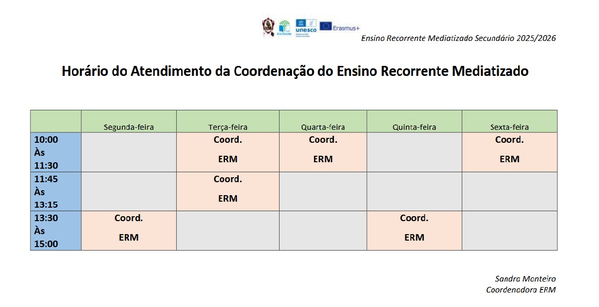 Em anexo o horário do ESRM para o ano letivo 25/26.